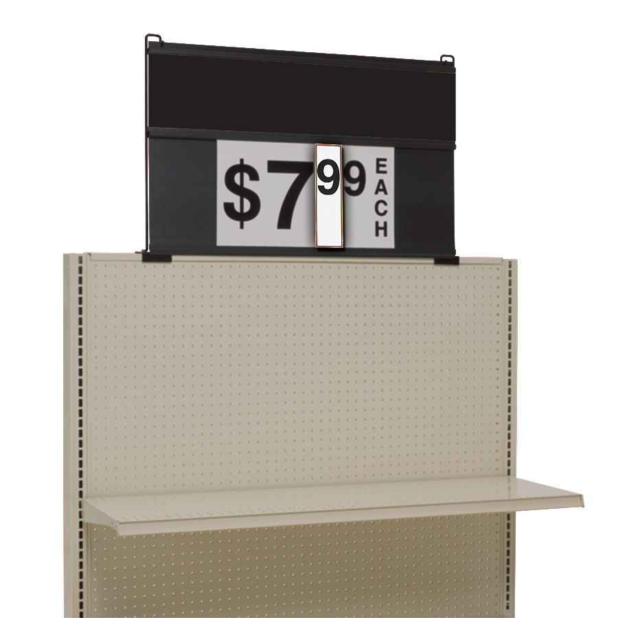 - Simply remove tablet from sign board, flip pages to display new pricing numeral
